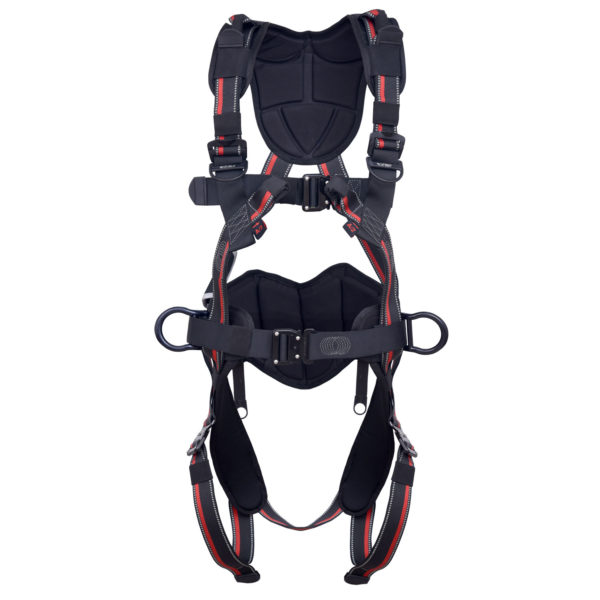 Consists of Dorsal D-ring for Fall Arrest and two lateral D-rings at waist level on the sides for work positioning. The sternal attachment textile loops can be attached to a Rope Grab to allow safe anchorage while climbing.
